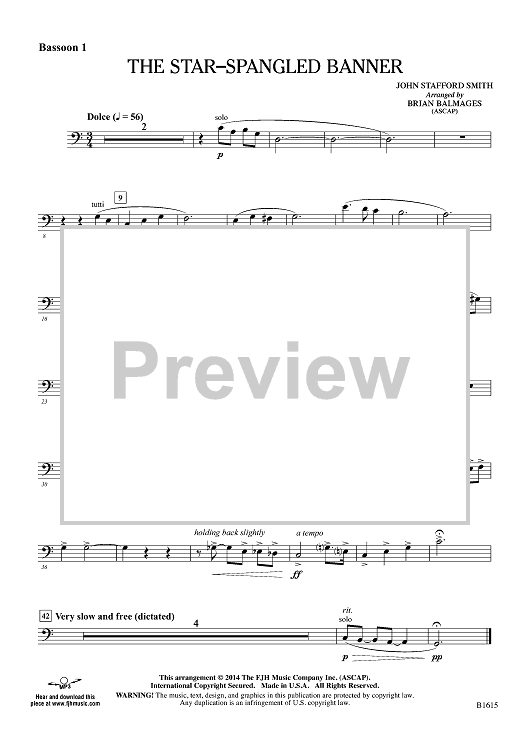 "The Star-Spangled Banner - Bassoon 1" Sheet Music by Brian Balmages