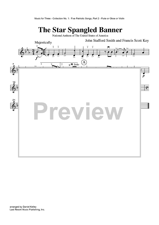 Digital Sheet Music for The Star Spangled Banner - Part 2 Flute, Oboe or Violin by , John Stafford Smith, Francis Scott Key, Daniel Kelley scored for Instrumental Trio; id:421558