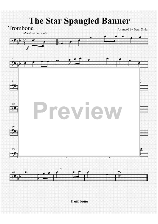 Digital Sheet Music for The Star-Spangled Banner - Trombone by , Francis Scott Key, Dean W. Smith scored for Brass Quintet; id:317778