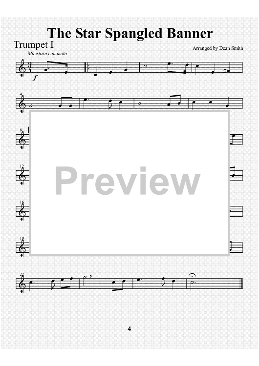 Digital Sheet Music for The Star-Spangled Banner - Trumpet 1 by , Francis Scott Key, Dean W. Smith scored for Brass Quintet; id:317775