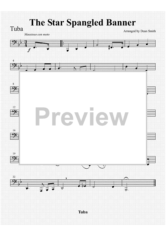 Digital Sheet Music for The Star-Spangled Banner - Tuba by , Francis Scott Key, Dean W. Smith scored for Brass Quintet; id:317779