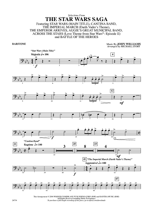 Digital Sheet Music for The Star Wars Saga, Selections from - Baritone by John Williams, Michael Story scored for Concert Band; id:403853