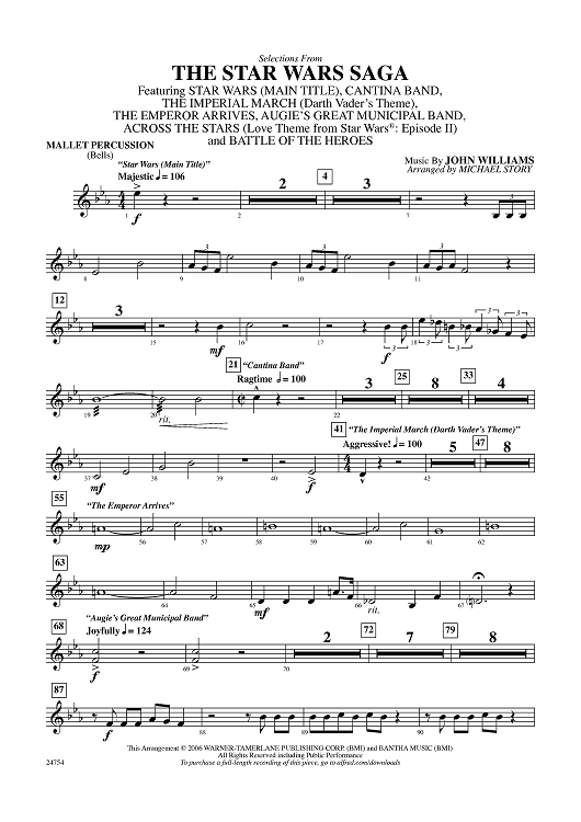 Digital Sheet Music for The Star Wars Saga, Selections from - Mallets by John Williams, Michael Story scored for Concert Band; id:403861