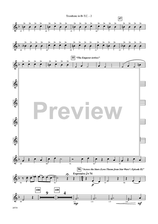"The Star Wars Saga, Selections from - Trombone in B-flat TC" Sheet Music by John Williams