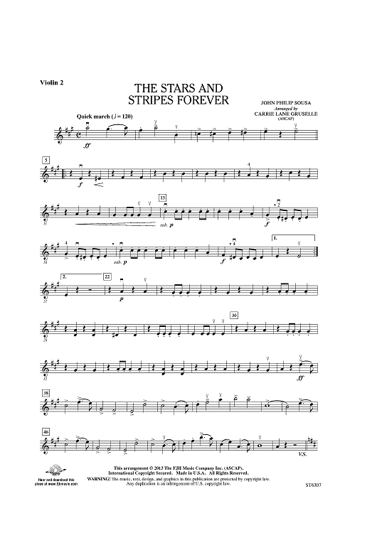 Digital Sheet Music for The Stars and Stripes Forever - Violin 2 by John Philip Sousa, Carrie Lane Gruselle scored for String Orchestra; id:436931