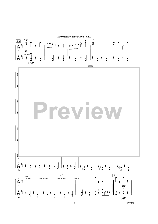 "The Stars and Stripes Forever - Violin 2" Sheet Music by John Philip Sousa