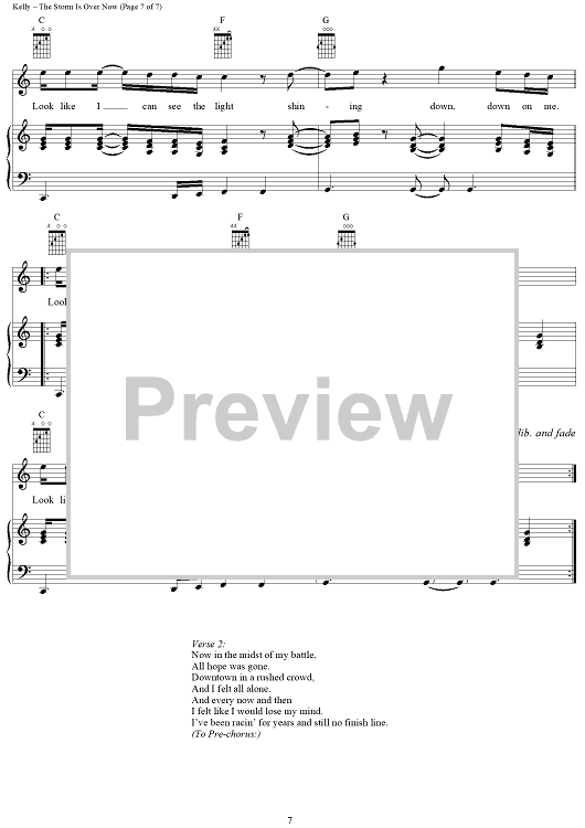 Digital Sheet Music for The Storm Is Over Now by R. Kelly scored for Piano/Vocal/Chords; id:285103