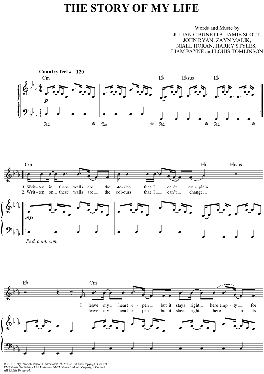 Digital Sheet Music for The Story Of My Life by One Direction, Liam Payne, Zayn Malik, Louis Tomlinson, Niall Horan, Harry Styles, Jamie Scott, Julian Bunetta, John Ryan scored for Piano/Vocal/Chords; id:438104