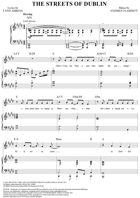 Digital Sheet Music for The Streets of Dublin by Stephen Flaherty, Lynn Ahrens scored for Piano/Vocal/Chords; id:295094