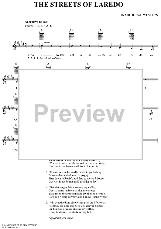 Digital Sheet Music for The Streets of Laredo by Dr. Higley Brewster, American Folk Song scored for Lead Sheet; id:292671