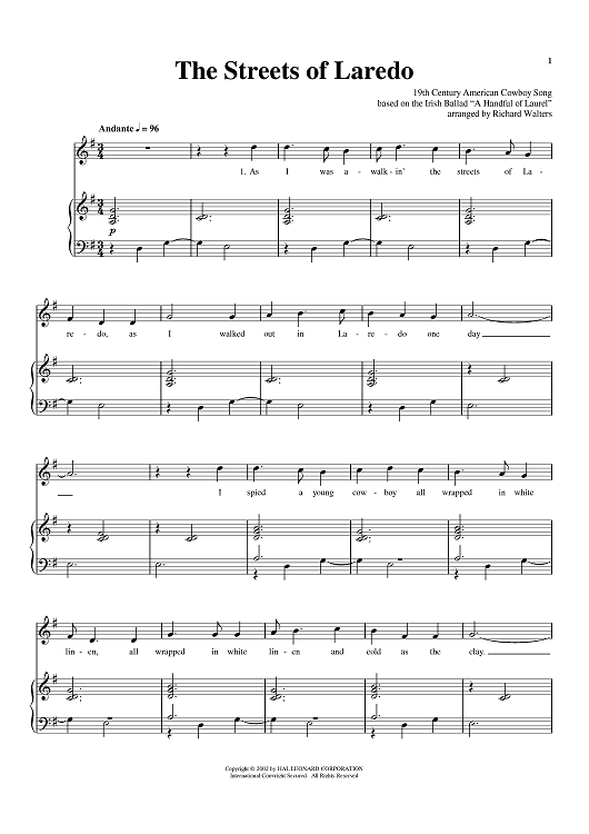 Digital Sheet Music for The Streets of Laredo by Johnny Cash, American Folk Song, Slick Rick scored for Piano/Vocal; id:397087