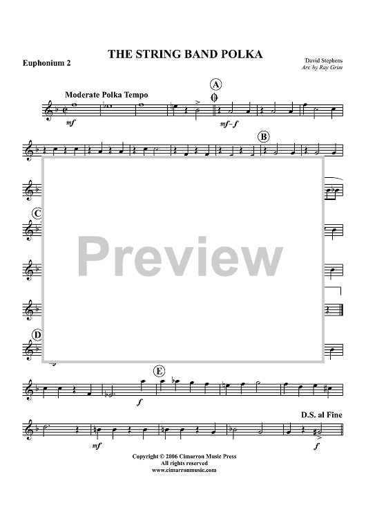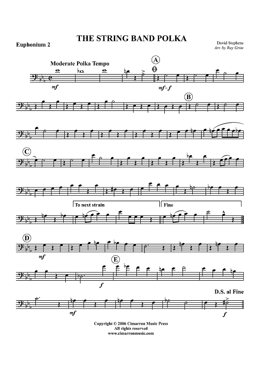 Digital Sheet Music for The String Band Polka - Euphonium 2 BC/TC by Ray Grim, David Stephens scored for Tuba Quartet; id:356548