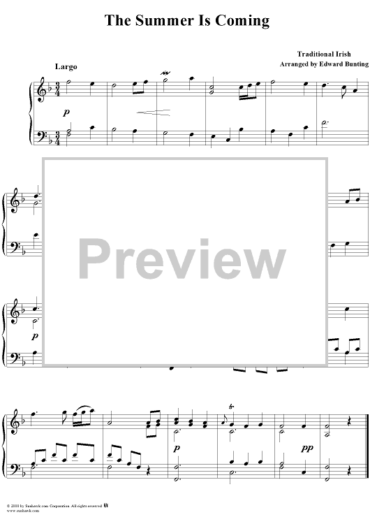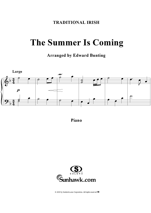 Digital Sheet Music for The Summer Is Coming by , Edward Bunting, Traditional scored for Piano Solo; id:174856