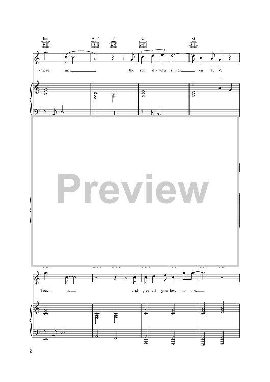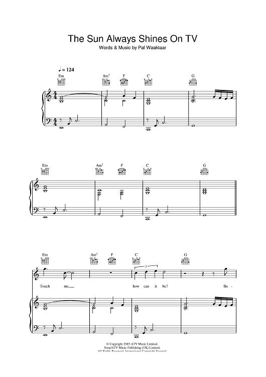 Digital Sheet Music for The Sun Always Shines On TV by Pal Waaktaar, A-Ha scored for Piano/Vocal/Chords; id:390964