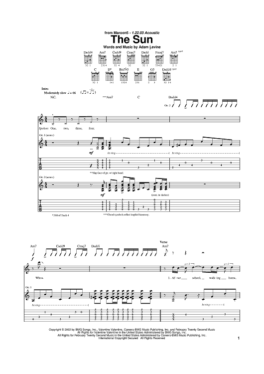 Digital Sheet Music for The Sun by Adam Levine, Maroon 5 scored for Guitar Tab; id:382275