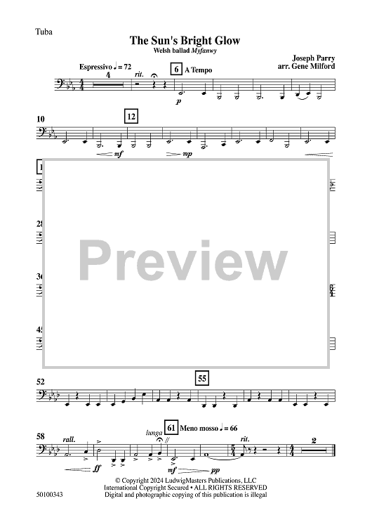 Digital Sheet Music for The Sun's Bright Glow - Tuba by Gene Milford, Joseph Parry scored for Concert Band; id:504564