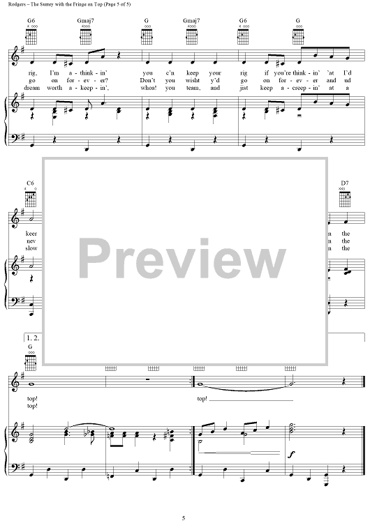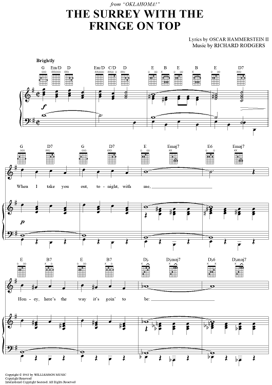 Digital Sheet Music for The Surrey with the Fringe on Top by Richard Rodgers, Oscar Hammerstein II scored for Piano/Vocal/Chords; id:403290