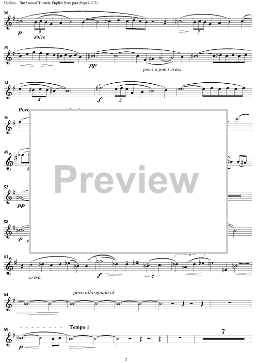 Digital Sheet Music for The Swan of Tuonela, No. 3 from "Lemminkäinen," Op. 22 - English Horn by William Spencer Johnson, Jean Sibelius scored for English Horn/Piano; id:359776