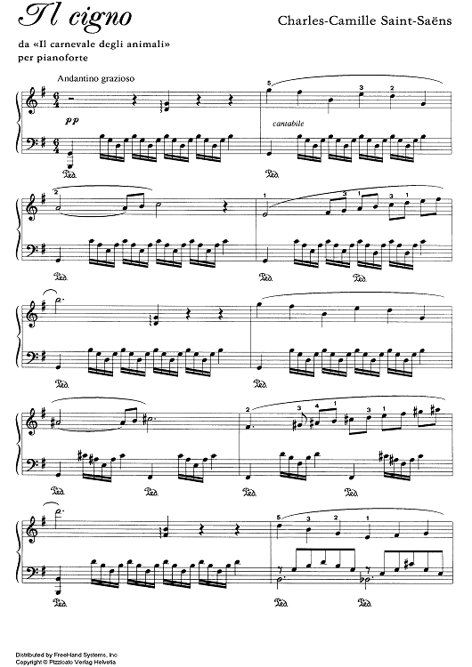 Digital Sheet Music for The Swan by Camille Saint-Saëns scored for Piano Solo; id:329072