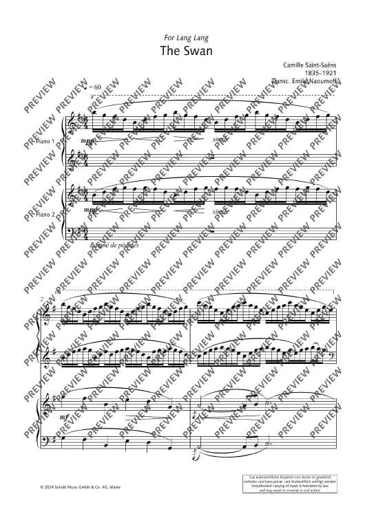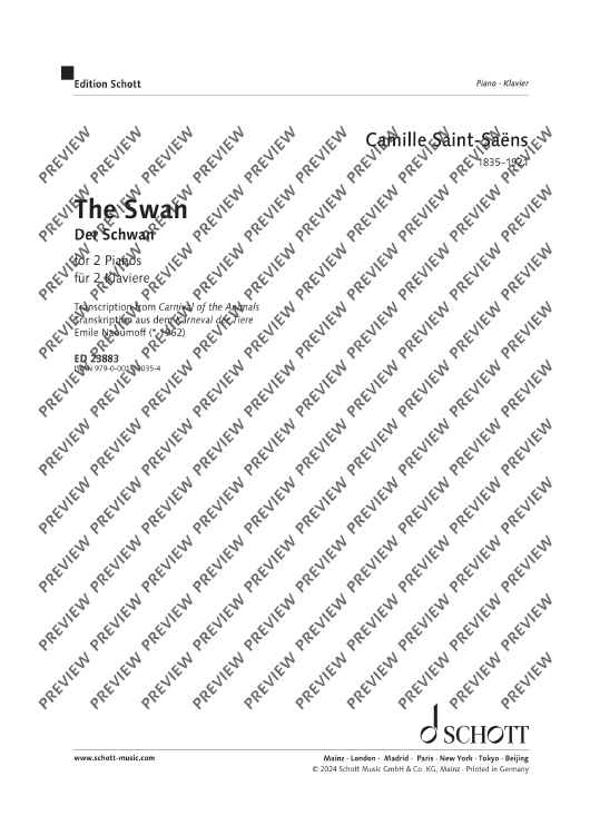 Experience a new dimension of musicality with this fascinating arrangement of the „Swan“ from Saint-Saëns' „Carnival of the Animals“ for two pianos. Enjoy the charming melody and expressive interpretation while playing together.