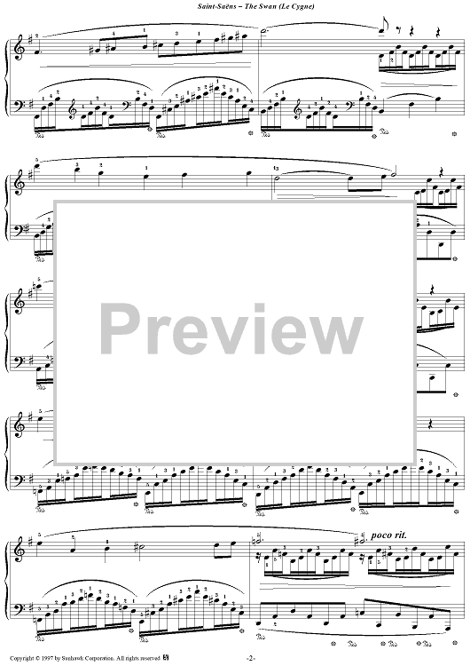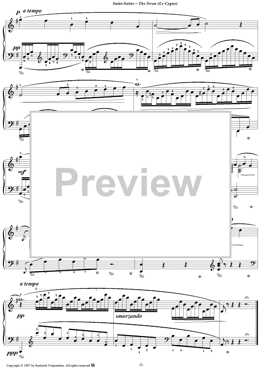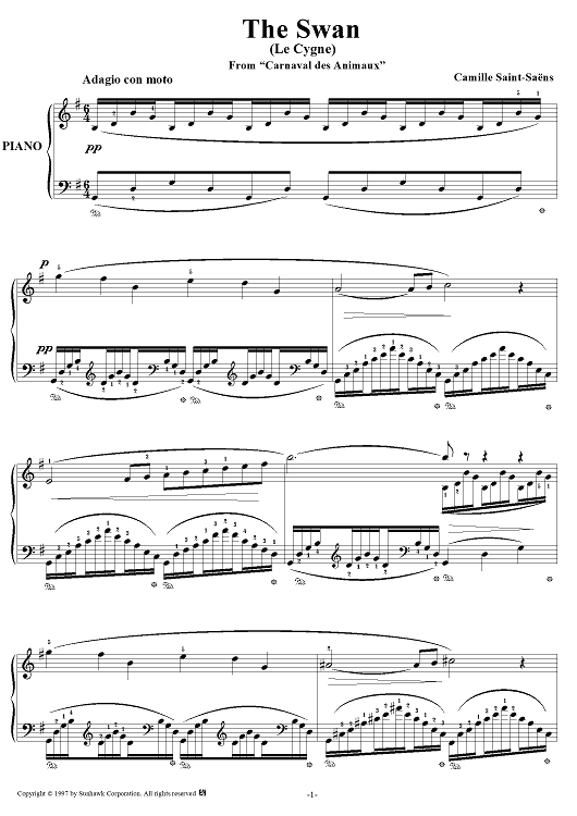 Digital Sheet Music for The Swan by Camille Saint-Saëns scored for Piano Solo; id:94696