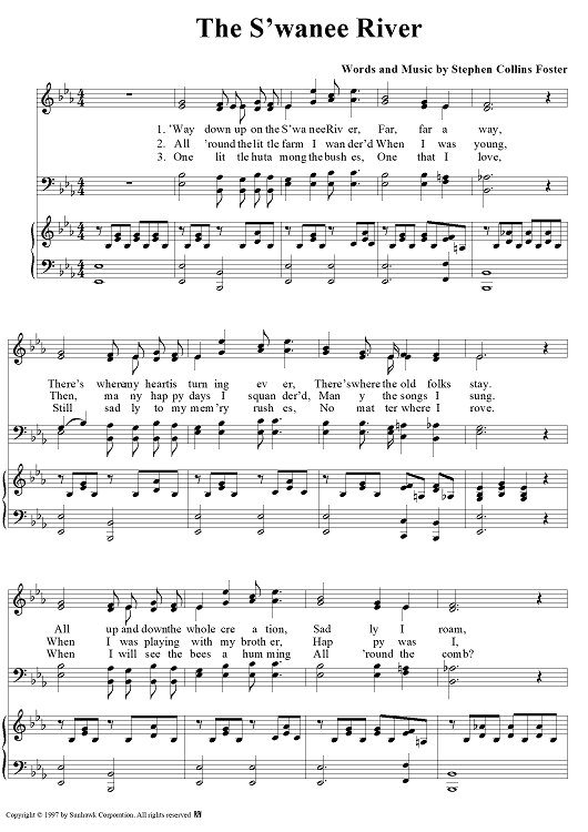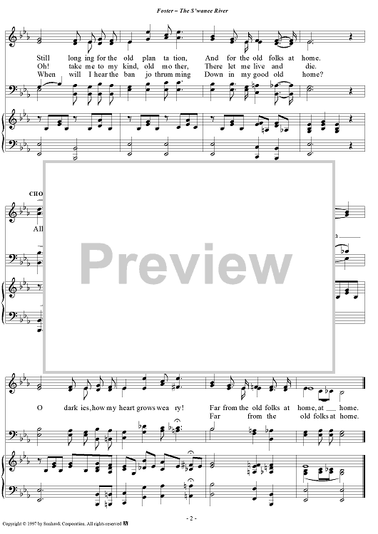 Digital Sheet Music for The S'wanee River by Stephen Foster scored for Four-part Mixed Chorus/Piano; id:94674