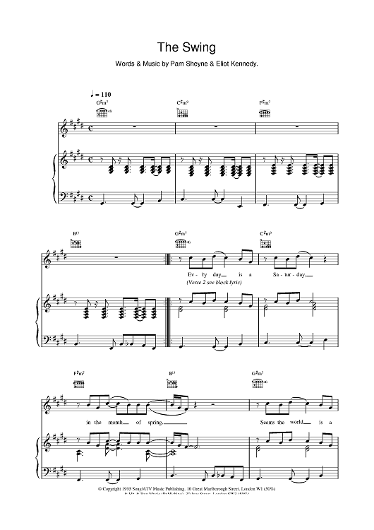 Digital Sheet Music for The Swing by Eliot Kennedy, Pam Sheyne, 911 scored for Piano/Vocal/Chords; id:379816