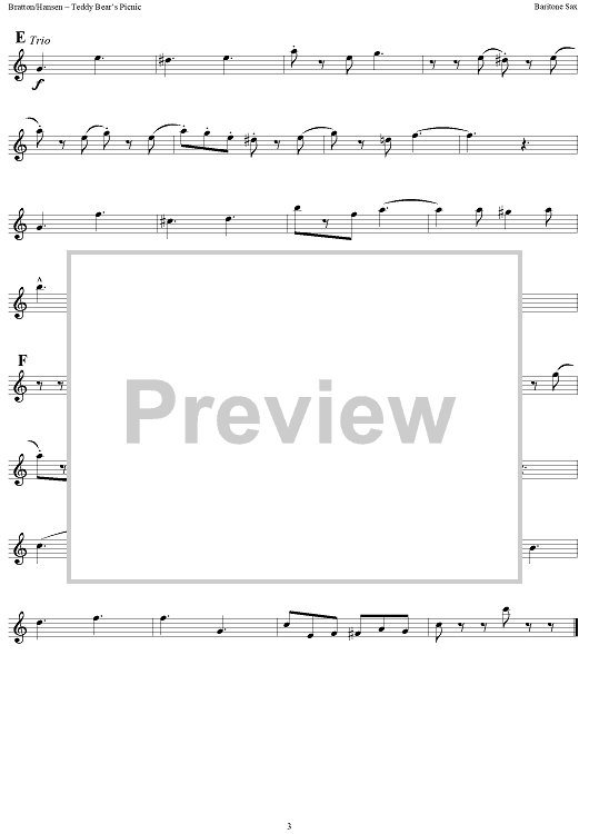 "The Teddy Bears' Picnic - Baritone Sax" Sheet Music by John W. Bratton