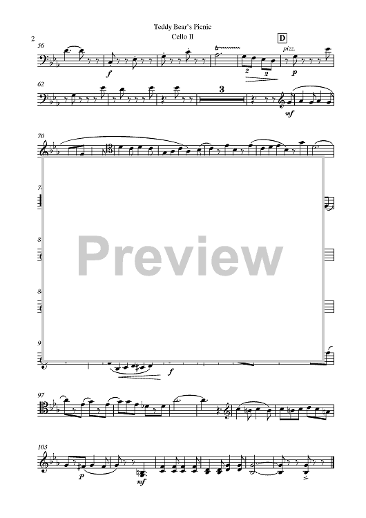 "The Teddy Bears' Picnic - Cello 2" Sheet Music by John W. Bratton