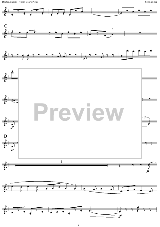 "The Teddy Bears' Picnic - Soprano Sax" Sheet Music by John W. Bratton