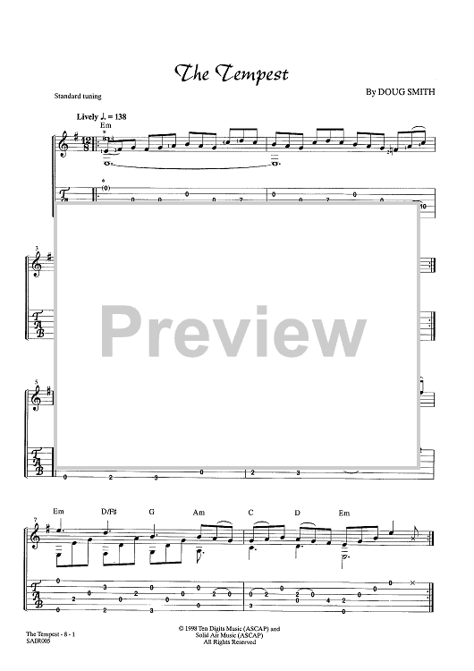 Digital Sheet Music for The Tempest (No MP3) by Doug Smith scored for Guitar Tab; id:453154