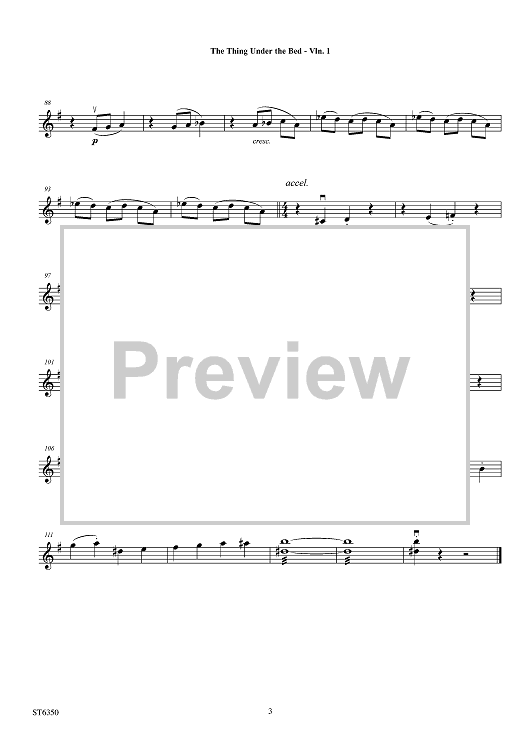 Digital Sheet Music for The Thing Under the Bed - Violin 1 by Lauren Bernofsky scored for Orchestra; id:448182