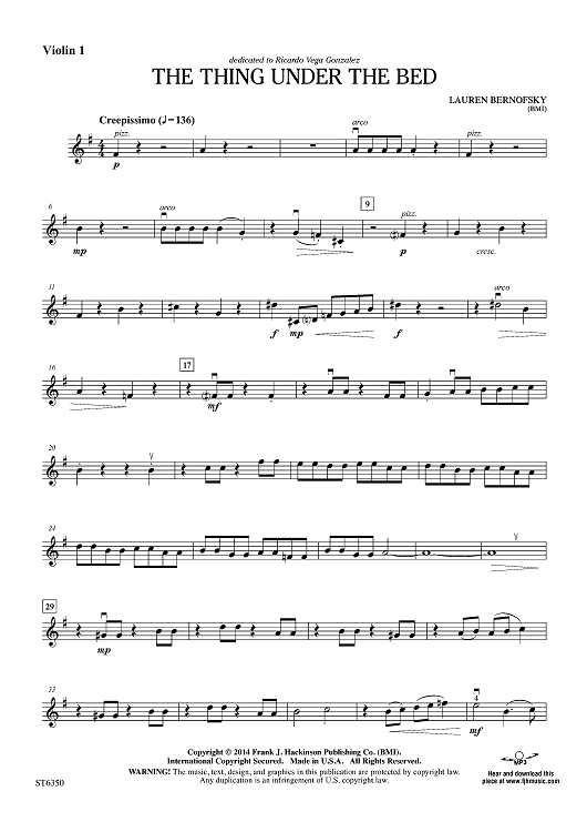 "The Thing Under the Bed - Violin 1" Sheet Music by Lauren Bernofsky
