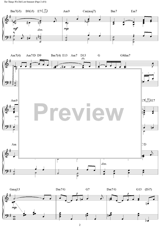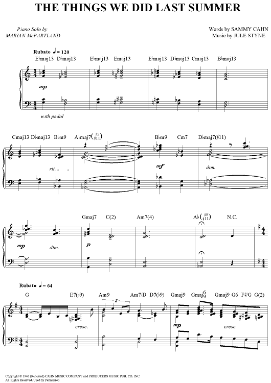 Digital Sheet Music for The Things We Did Last Summer by Jule Styne, Sammy Cahn, Marian McPartland, Ellen Rowe scored for Piano Solo; id:119657