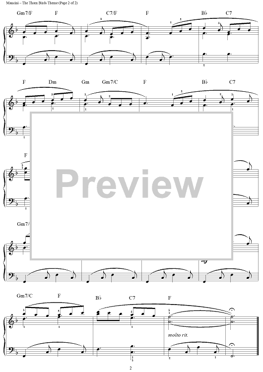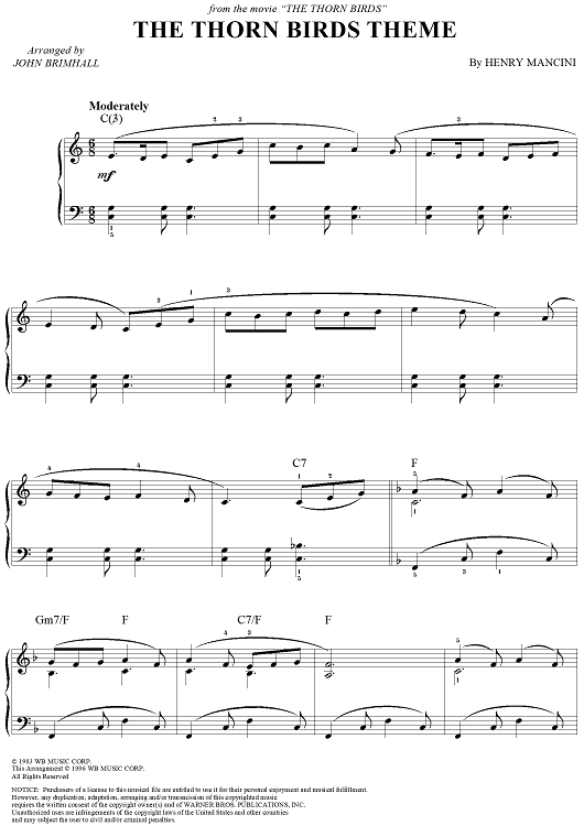 "The Thorn Birds Theme" Sheet Music by Henry Mancini