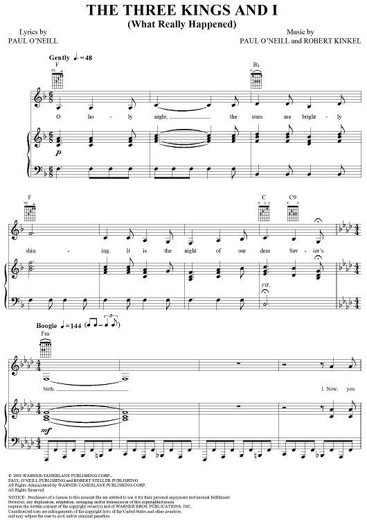 Digital Sheet Music for The Three Kings and I (What Really Happened) by Trans-Siberian Orchestra, Paul O'Neill, Robert Kinkel scored for Piano/Vocal/Chords; id:253918