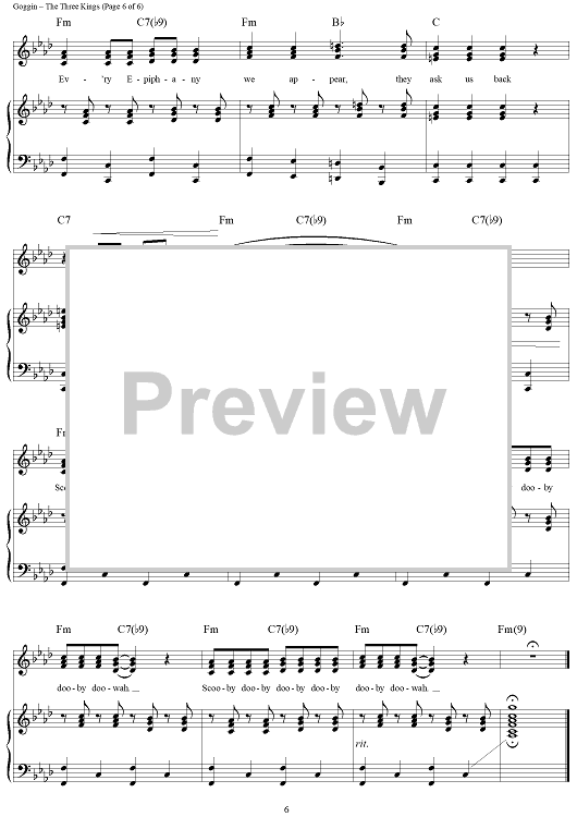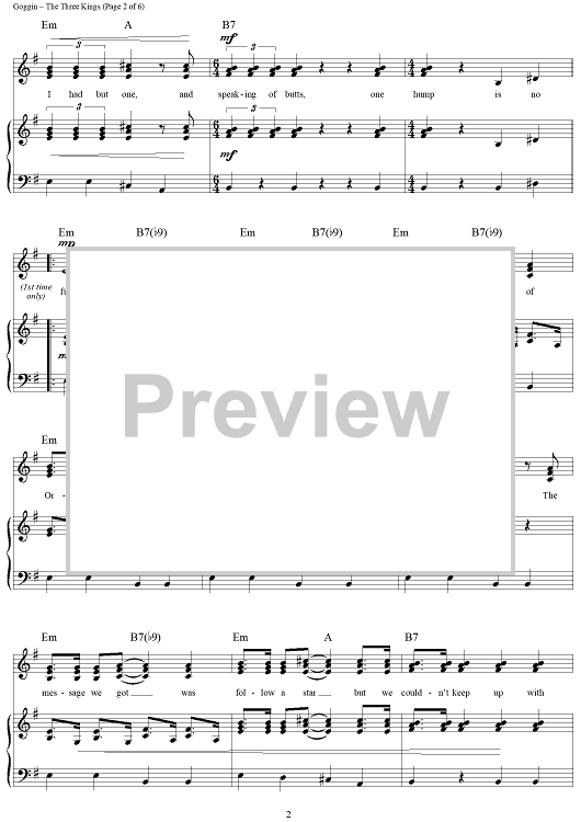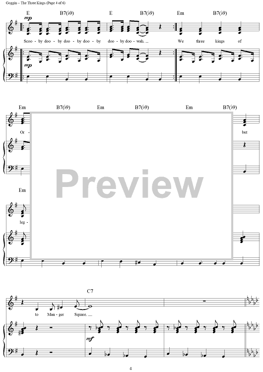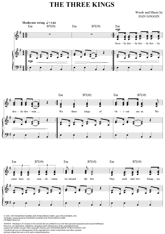 Digital Sheet Music for The Three Kings by Dan Goggin scored for Piano/Vocal/Chords; id:312519