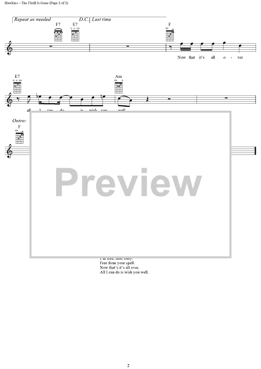 Digital Sheet Music for The Thrill Is Gone by Jerry Garcia, Rick Darnell, Roy Hawkins scored for Easy Guitar Tab/Vocal; id:291733