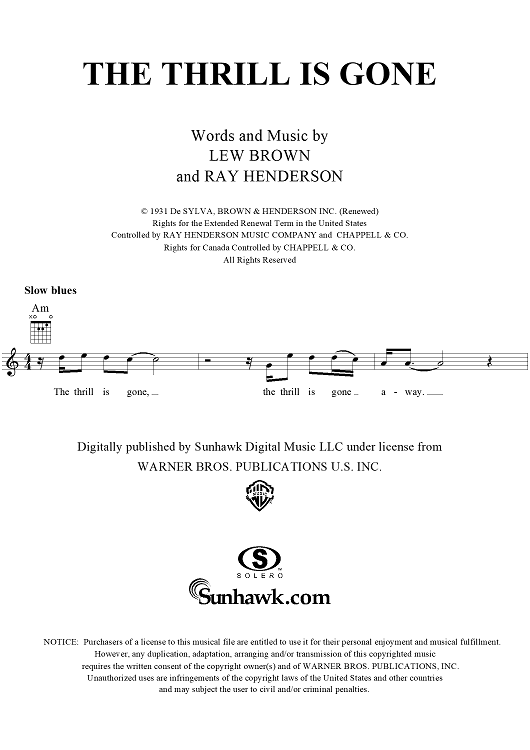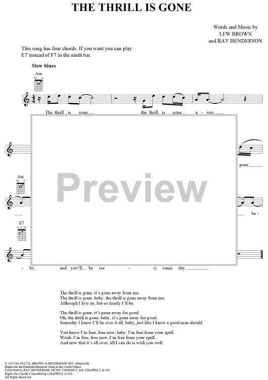 Digital Sheet Music for The Thrill Is Gone by B.B. King, Ray Henderson, Lew Brown scored for Lead Sheet; id:292695