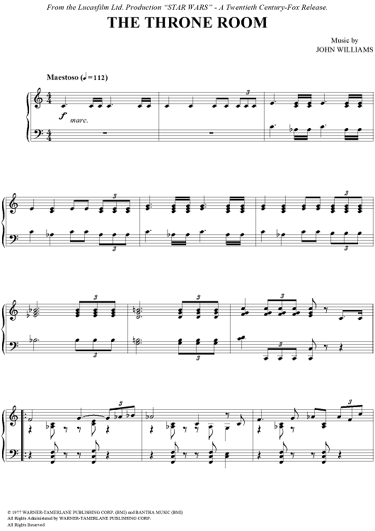 Digital Sheet Music for The Throne Room by John Williams scored for Piano Solo; id:311624