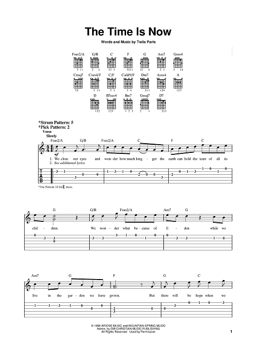 Digital Sheet Music for The Time Is Now by Twila Paris scored for Easy Guitar; id:372570