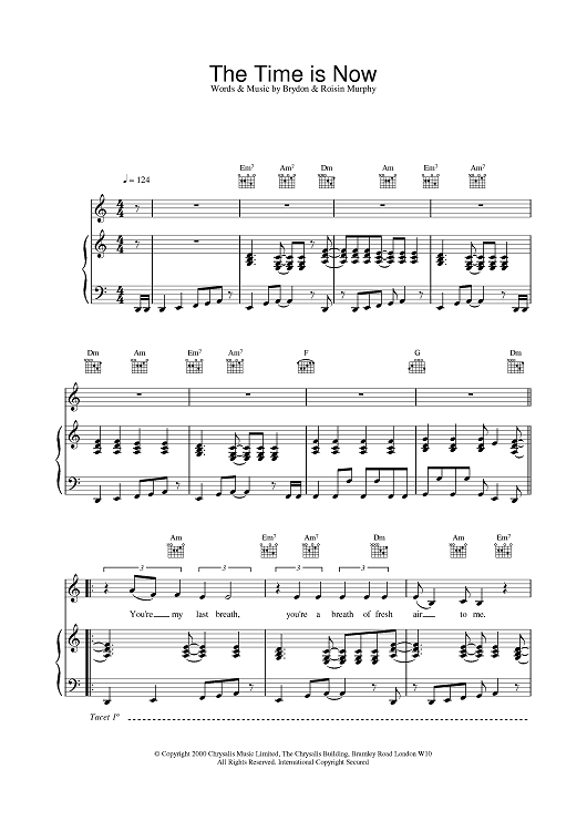 Digital Sheet Music for The Time Is Now by Roisin Murphy, Mark Brydon, Moloko scored for Piano/Vocal/Chords; id:382523