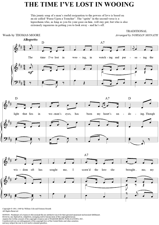 Digital Sheet Music for The Time I've Lost in Wooing by Norman Monath, Thomas Moore, Traditional scored for Piano/Vocal/Chords; id:262217