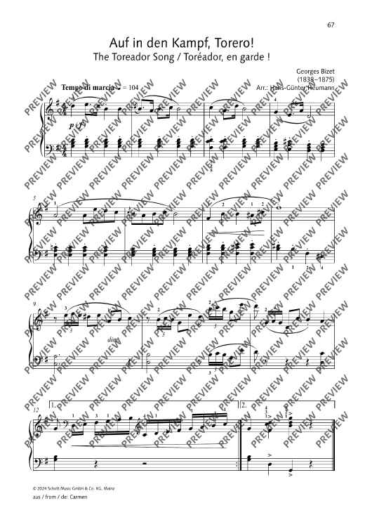 Digital Sheet Music for The Toreador Song by Georges Bizet, Hans-Guenter Heumann scored for Piano; id:504168
