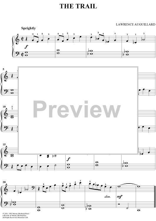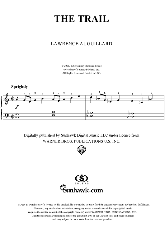 Digital Sheet Music for The Trail by Lawrence Auguillard scored for Easy Piano; id:287424