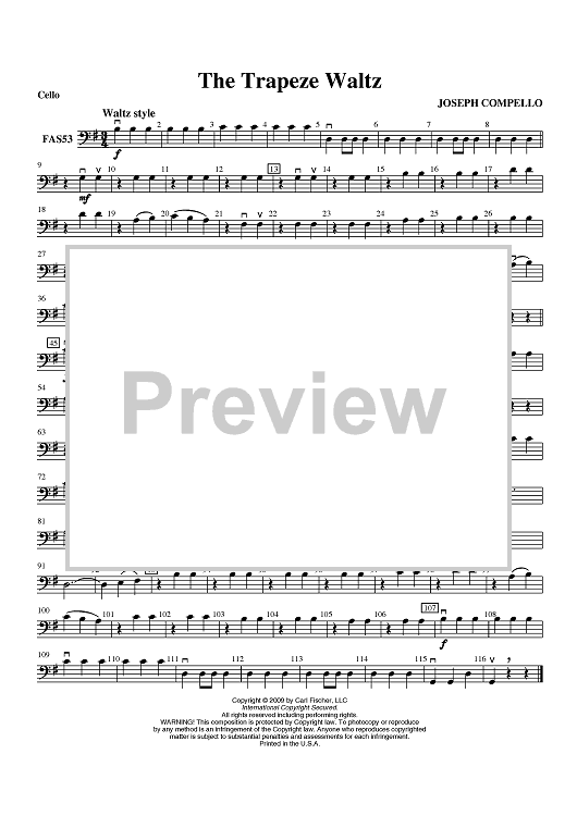"The Trapeze Waltz - Cello" Sheet Music by Joseph Compello