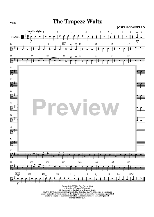 Digital Sheet Music for The Trapeze Waltz - Viola by Joseph Compello scored for Orchestra; id:408329