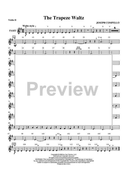 Digital Sheet Music for The Trapeze Waltz - Violin 2 by Joseph Compello scored for Orchestra; id:408327