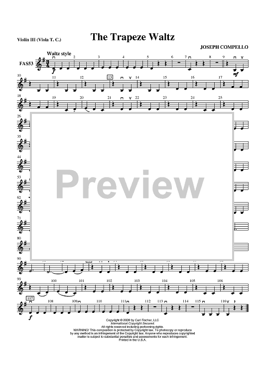Digital Sheet Music for The Trapeze Waltz - Violin 3 by Joseph Compello scored for Orchestra; id:408328