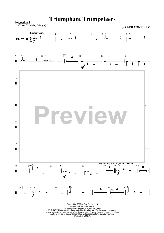 "The Triumphant Trumpeteers - Percussion 2" Sheet Music by Joseph Compello